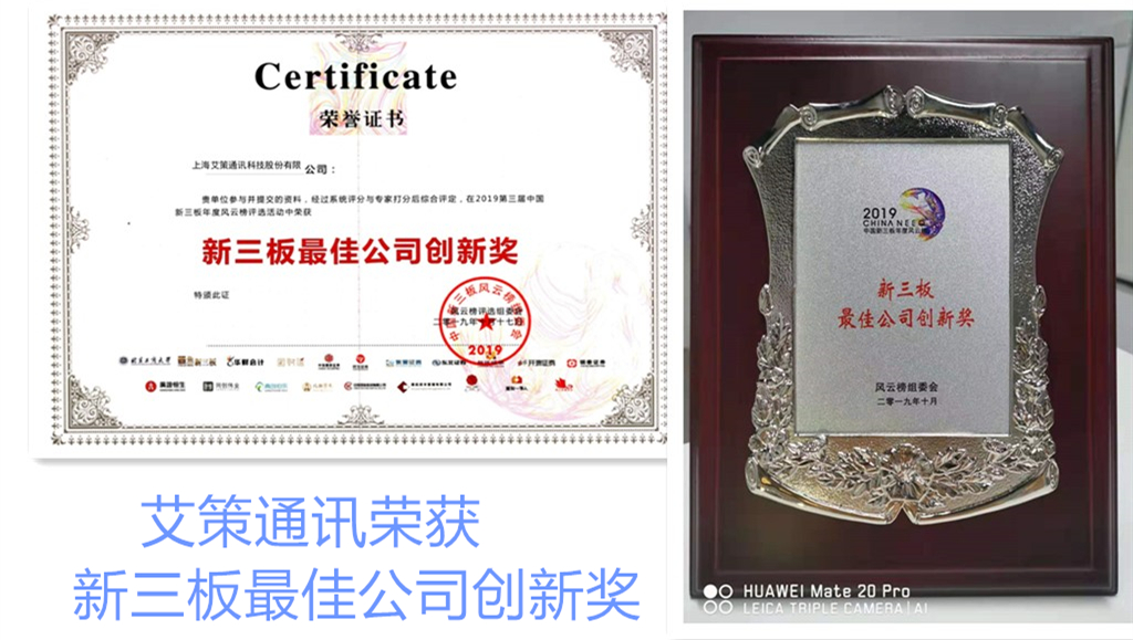 上海艾策通訊榮獲“新三板最佳公司創新獎”