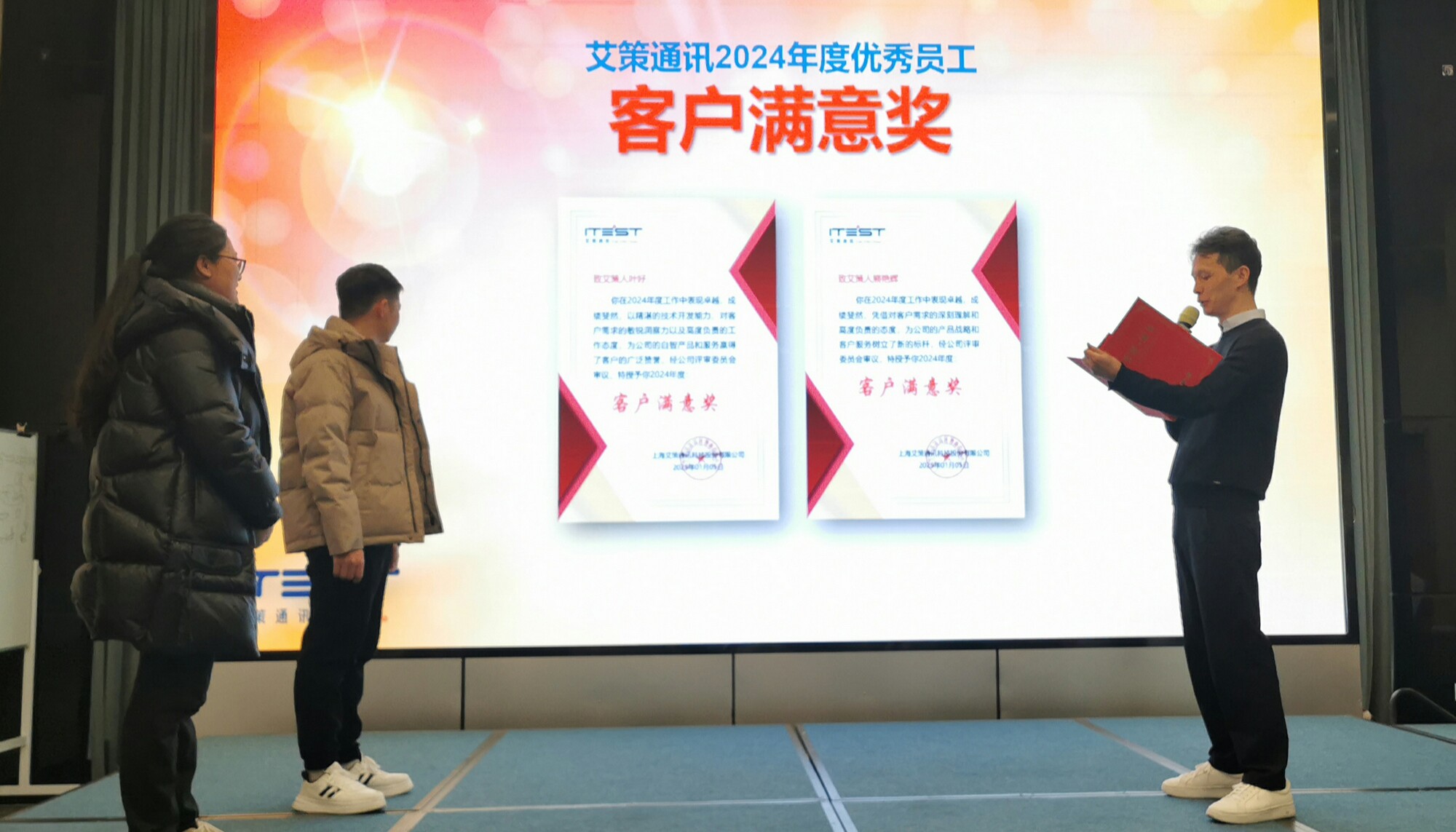 優秀員工頒獎環節最為激動人心。通過部門提名、評審委會員審議,現場授予王永鋒、趙紅梅、茍皓、崔寧等為代表的16人以優秀員工證書和現金獎勵,獎項涵蓋杰出貢獻獎、客戶滿意獎、創新能力獎、進步提升獎、任勞任怨獎、最佳管理獎和團隊協作獎等。