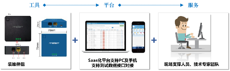 支持裝維人員對用戶寬帶進行寬帶測試、網站訪問、Ping測試、TraceRT測試、DNS域名解析、WIFI型號強度測試等常規測試。
